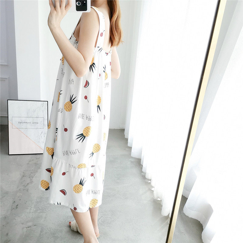 Cotton pineapple nightdress sexy vest suspenders pajamas female summer plus fat size pregnant women fat MM200 jin home clothes