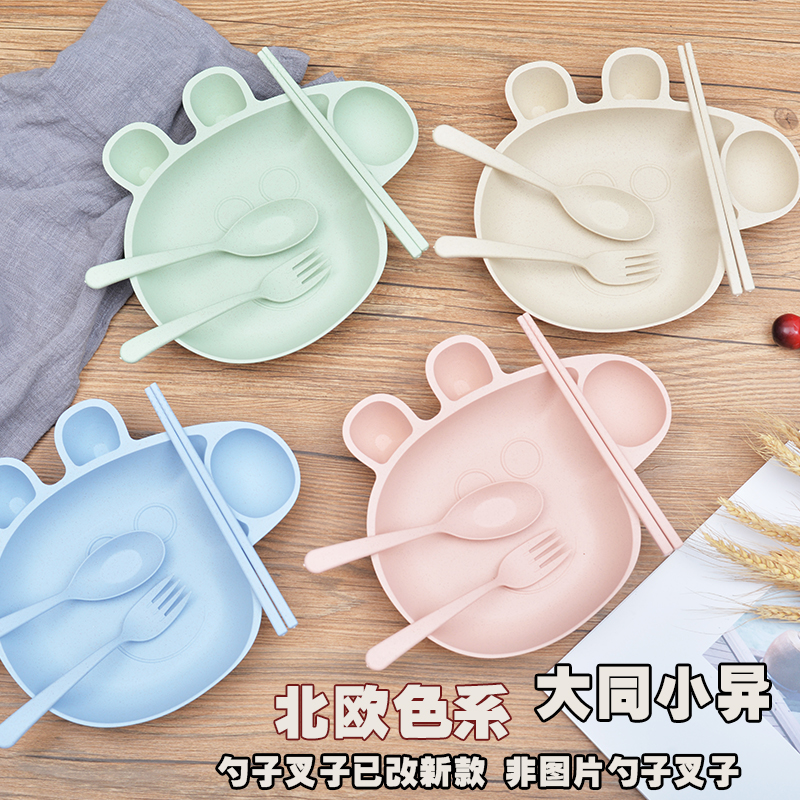 Cartoon Piggy Page Children's Cute Wheat Straw Tableware Bowl Baby Dining Plate Fall-resistant Kindergarten Gift