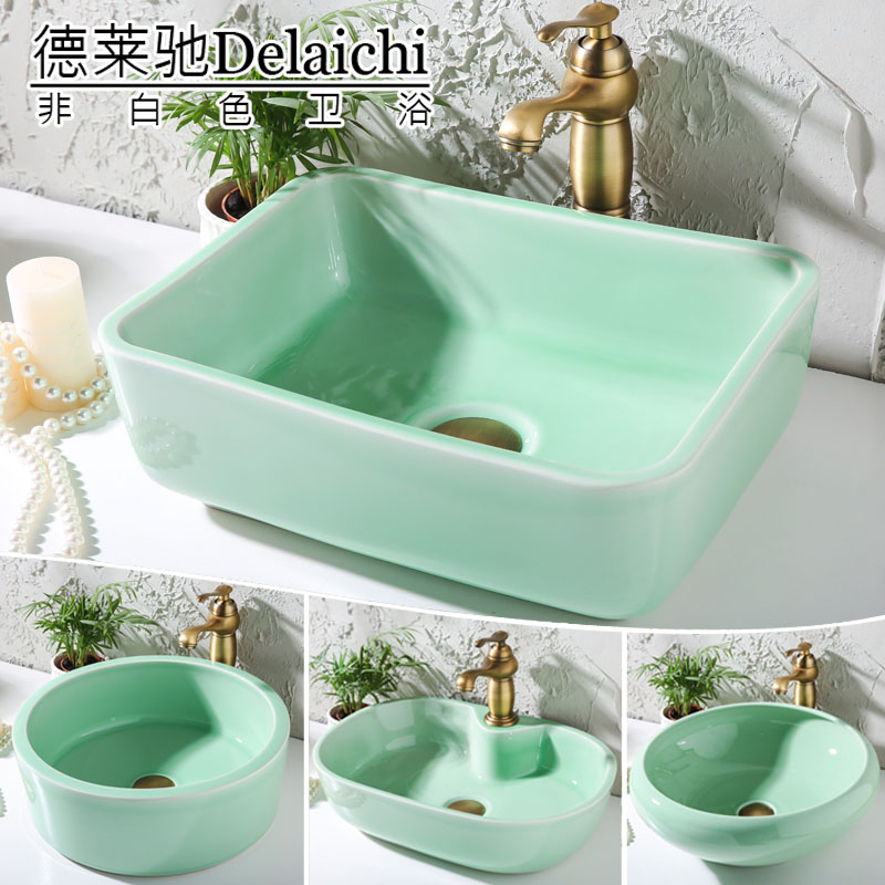 Celadon table basin Ceramic wash basin Minimalist light luxury art wash basin Small size balcony household wash basin Single sink