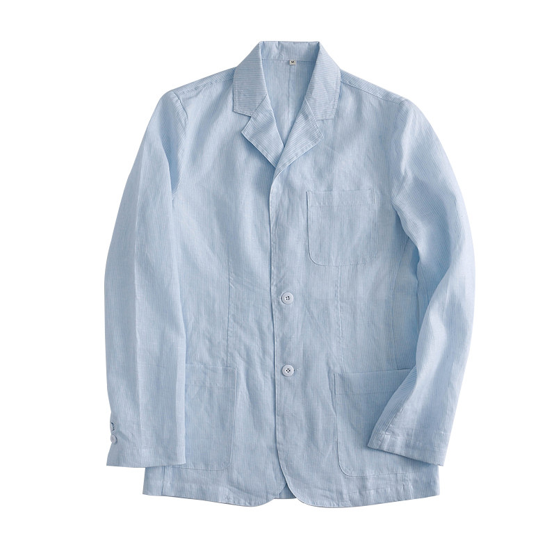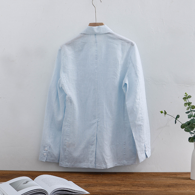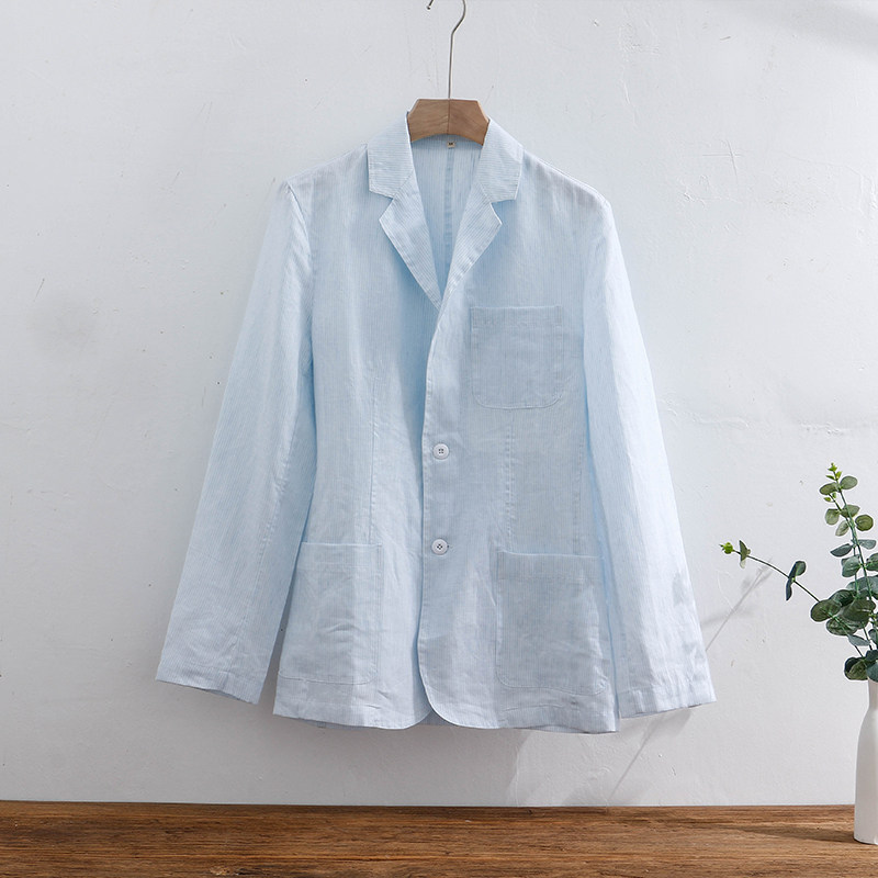 Linen small suit men 2021 spring and summer new cotton linen literary leisure thin stripe comfortable single suit jacket