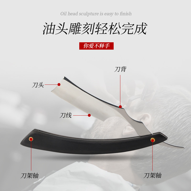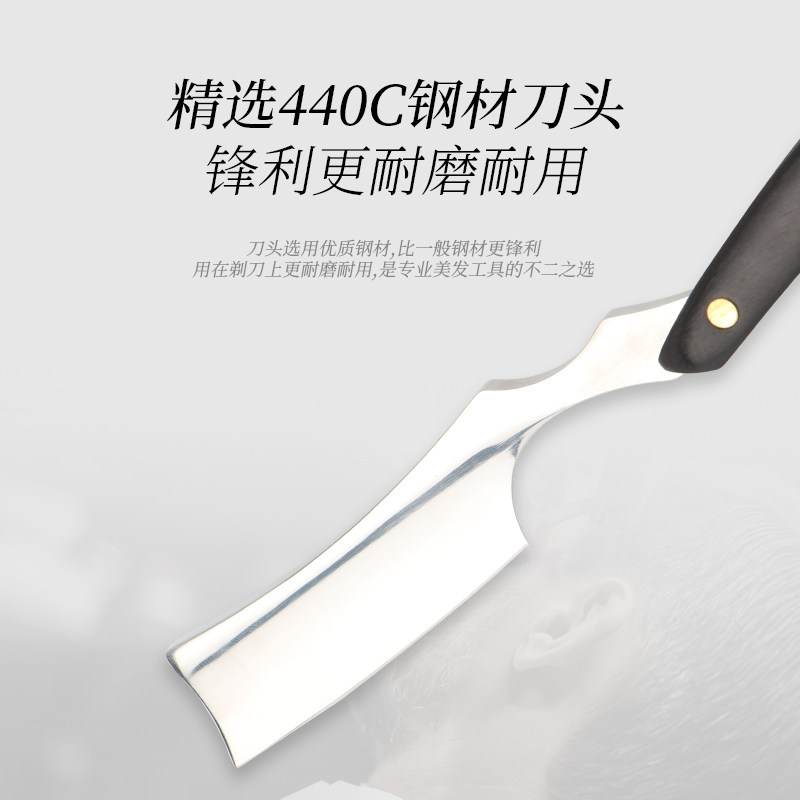High-grade old-fashioned retro black color wood razor manual razor razor 440C hairdressing razor shaver bald head