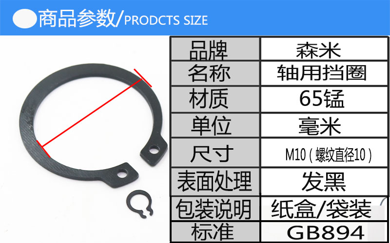 (M5678968-200)65 manganese steel GB894 shaft with C- shaped buckle ring outer circlip elastic circlip C- shaped circlip