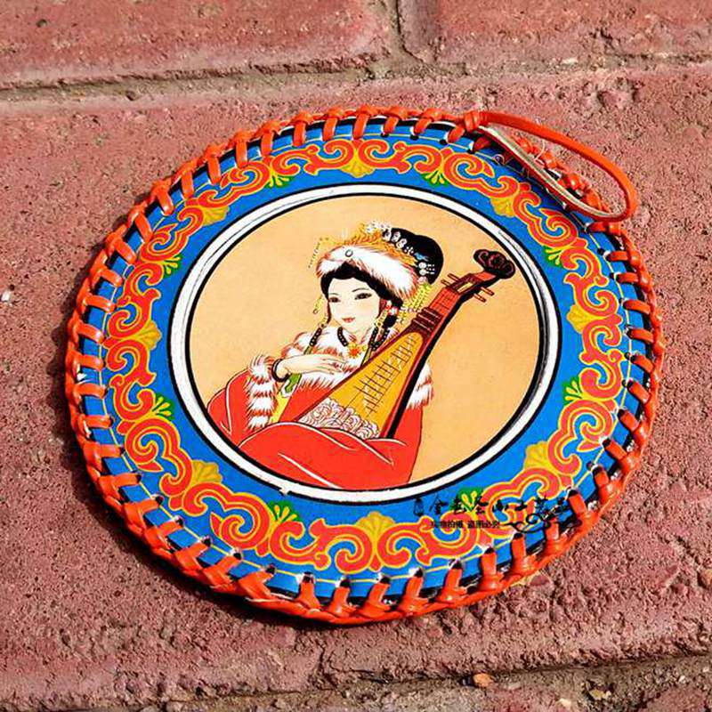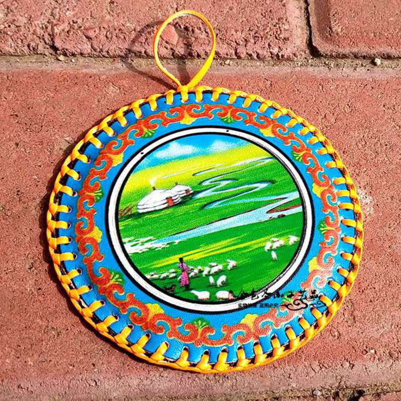 Mongolian characteristics of small mirror gifts Mongolian painted leather mirror Inner Mongolia craft gift decoration tourist souvenirs