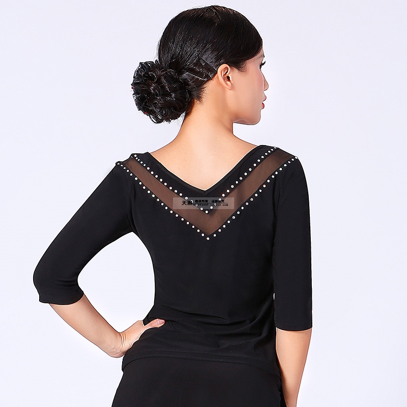 New Latin dance female Morden dance blouse national standard dance dress Social dance square dance mid-sleeve precisely dance practice