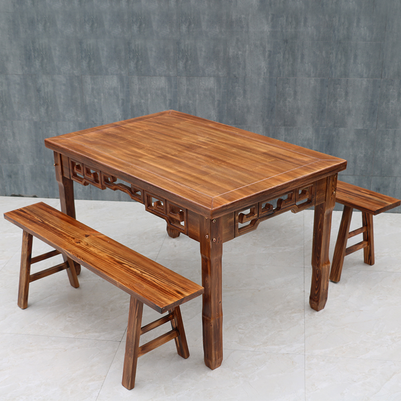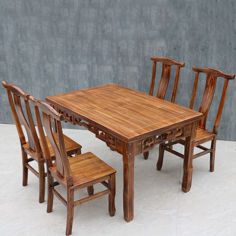 Carbonated Table Sub Real Wood Fire Pan Shop Table And Chairs Combined Fast Food Noodle Restaurant Snack Hotel Barbecue Outdoor Dining Room Antique