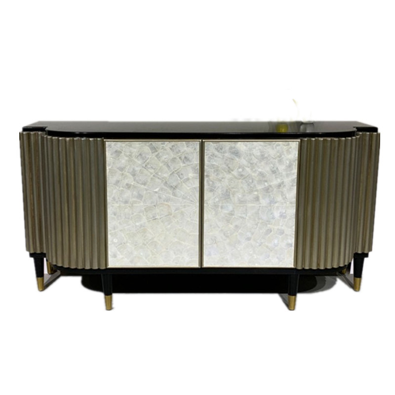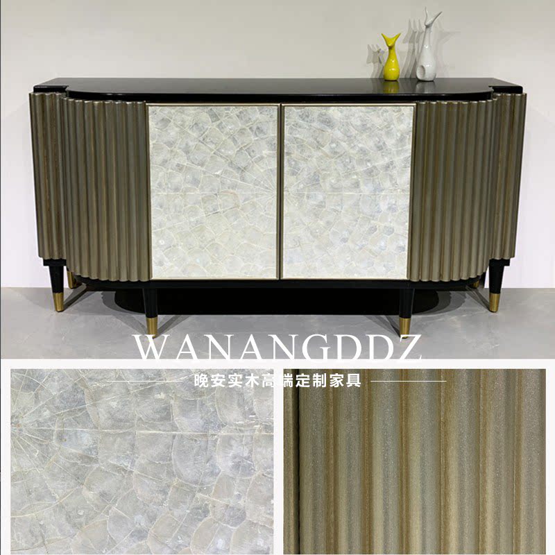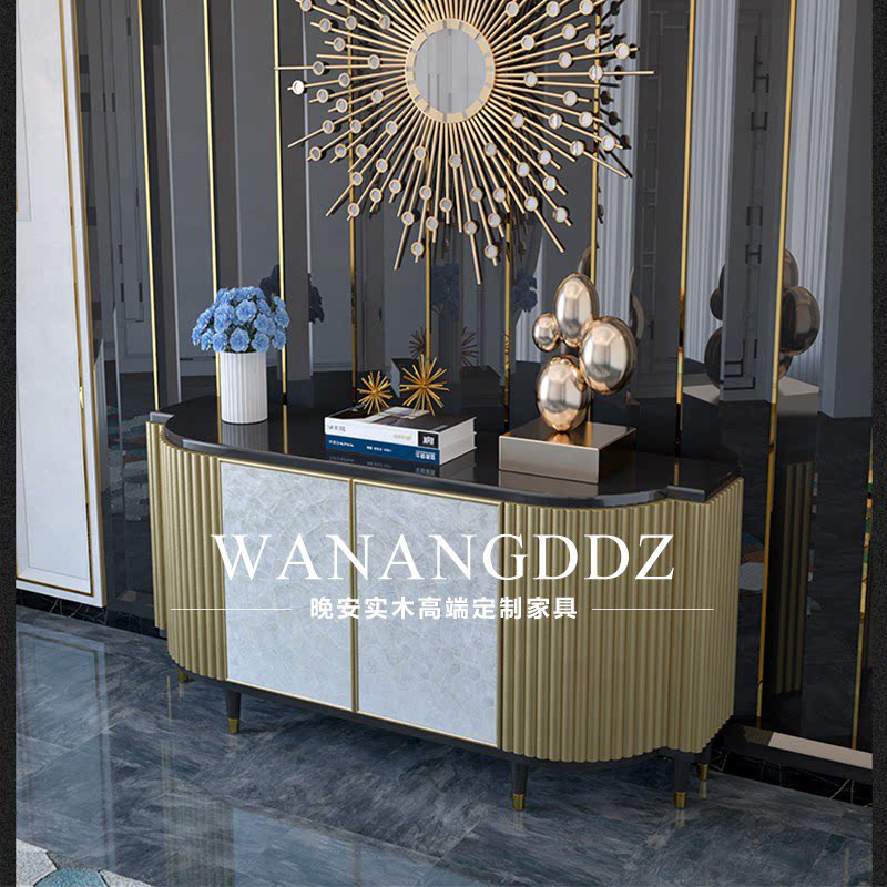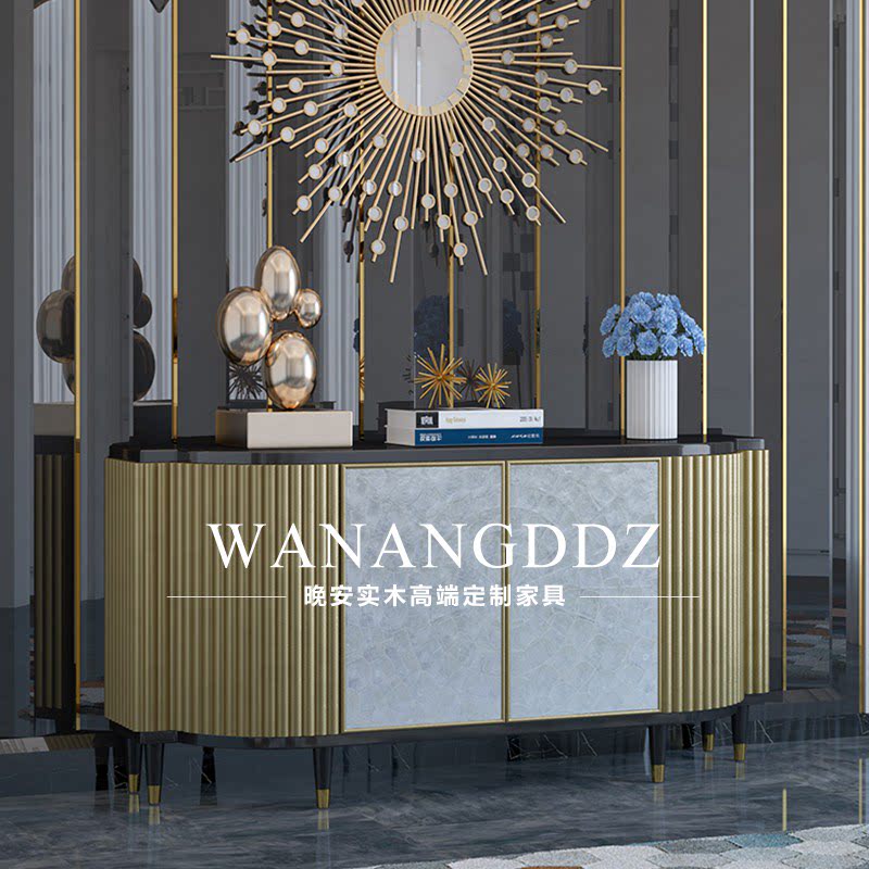 Light luxury post-modern solid wood shell porch storage cabinet Hong Kong-style dining cabinet American-style foyer metal foot storage cabinet