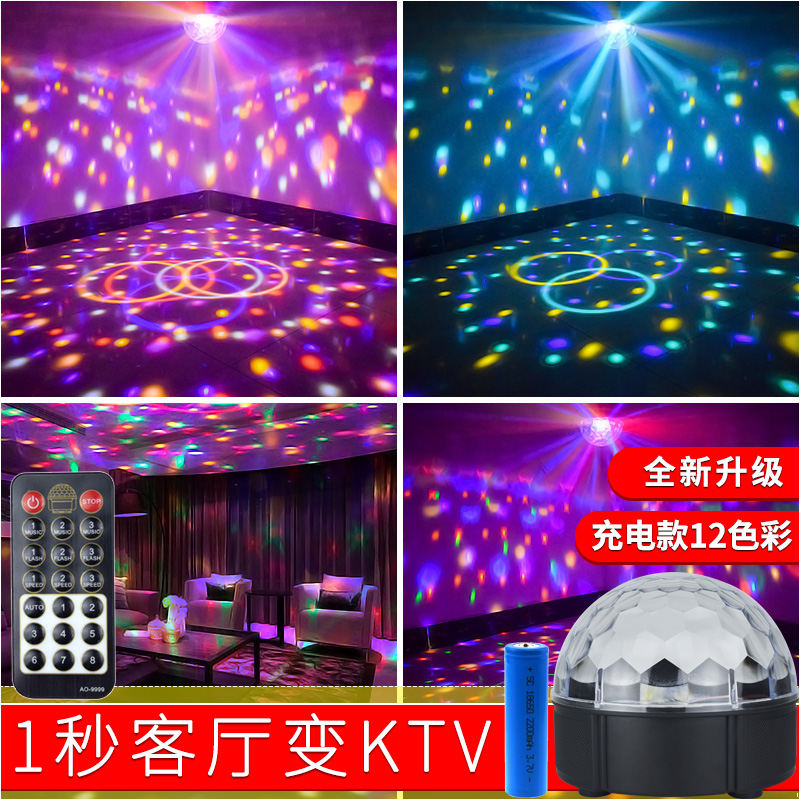 Outdoor charging 12 color magic ball lights household ktv flash rotation of colorful LED crystal bar jungling and di color lights