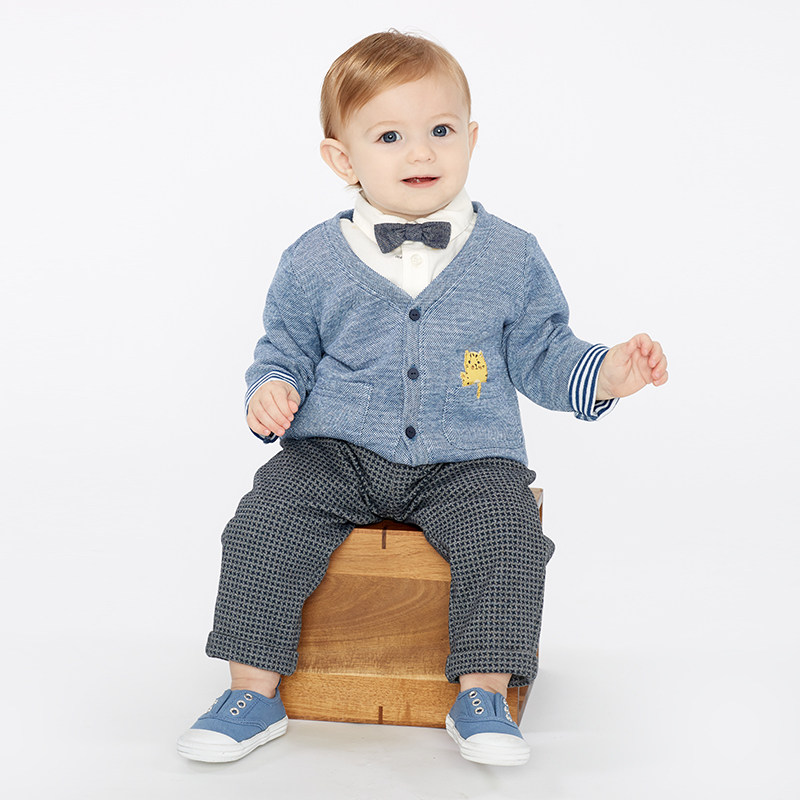 (Unavailable) David Bella Infants and Children's Clothing Spring and Autumn Boys and Girls Baby Cotton Cat Bow Tie Long Sleeve Shirt