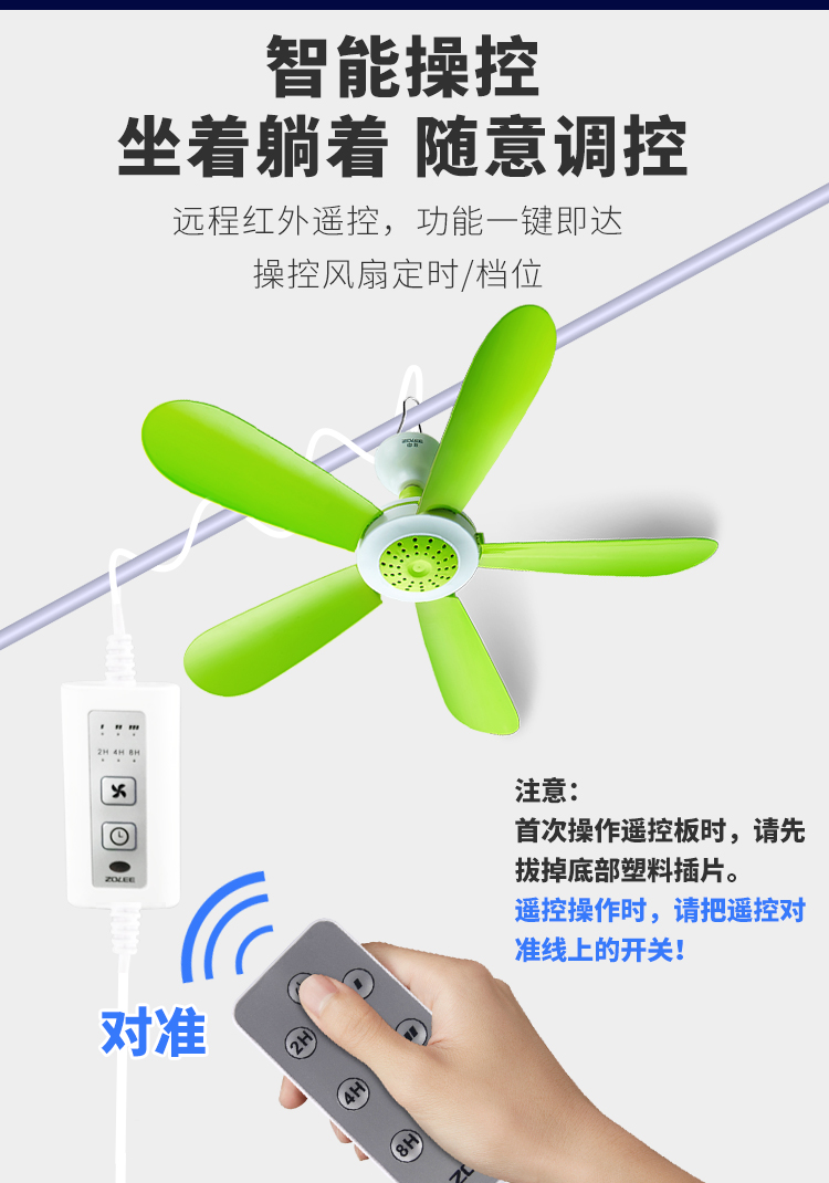 Mid-link USB small ceiling fan remote control timing throttle Dormitory Bed Electric Fan Home Breeze Silent Mosquito Net Mini Fan