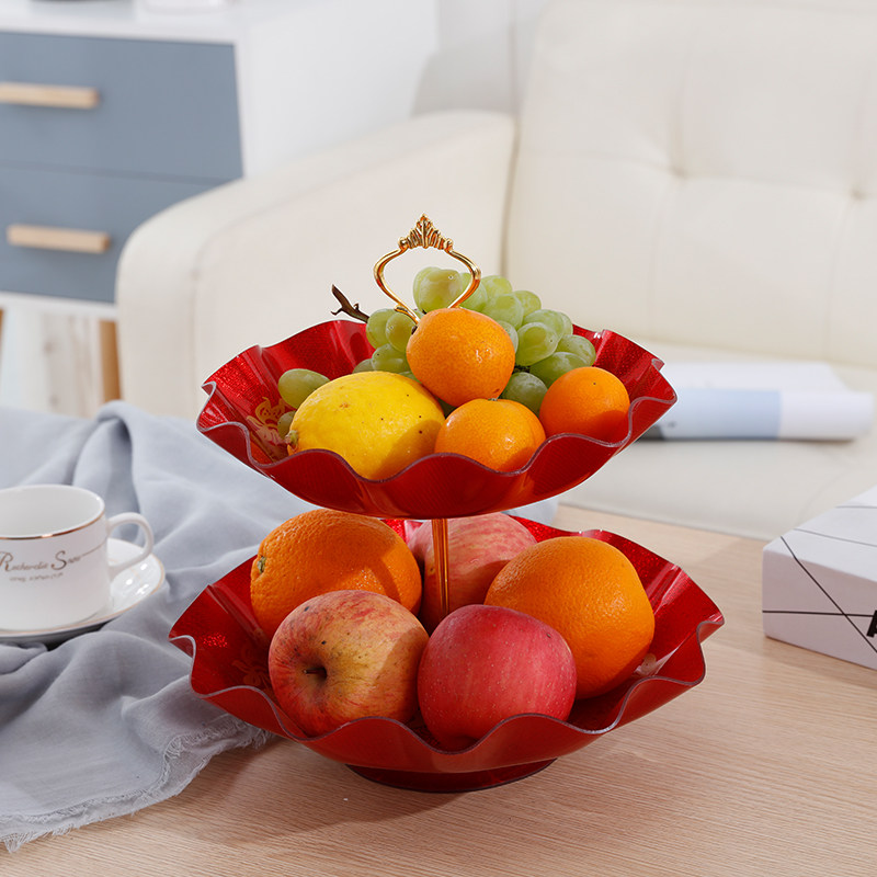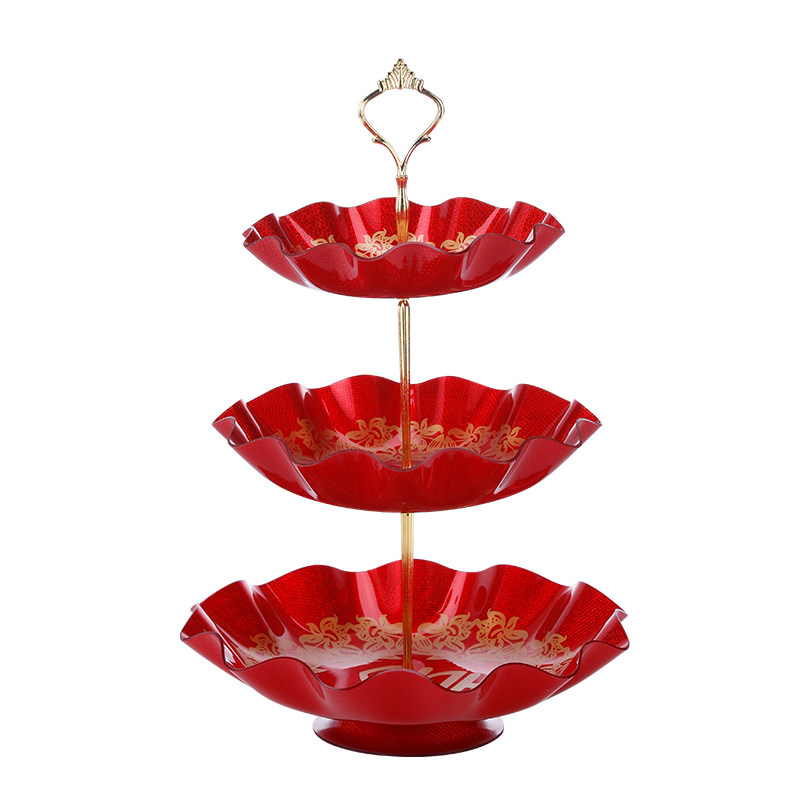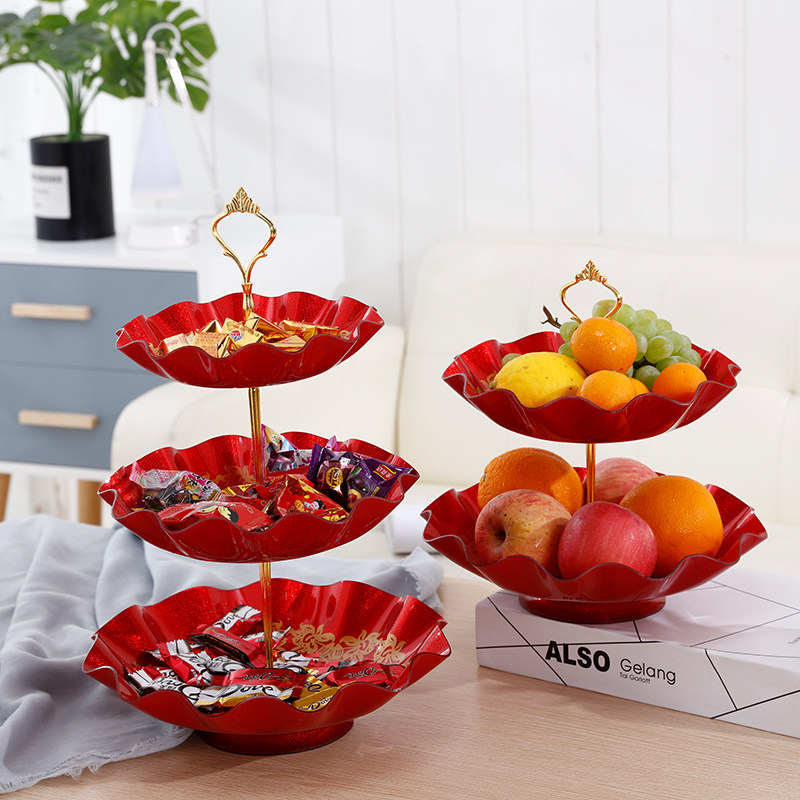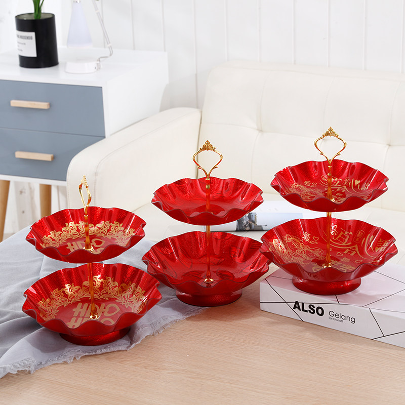 Wedding red living room wedding plate with base festive dried fruit plate acrylic double plastic household wedding wedding candy plate
