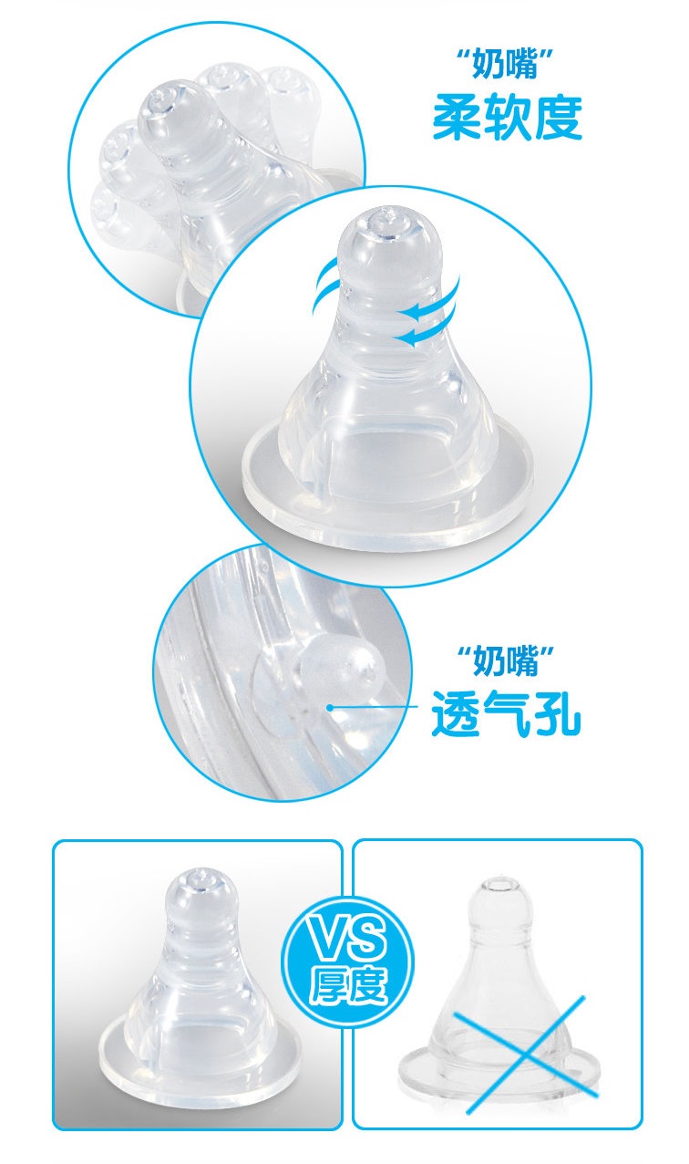 3 fit wide mouth peat with pacifier edible grade silicone safety material soft anti-choking and anti-flatulled gas 0-3 years old