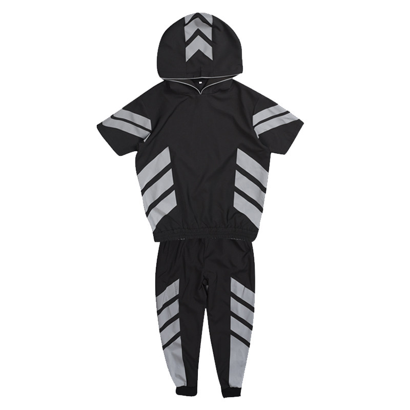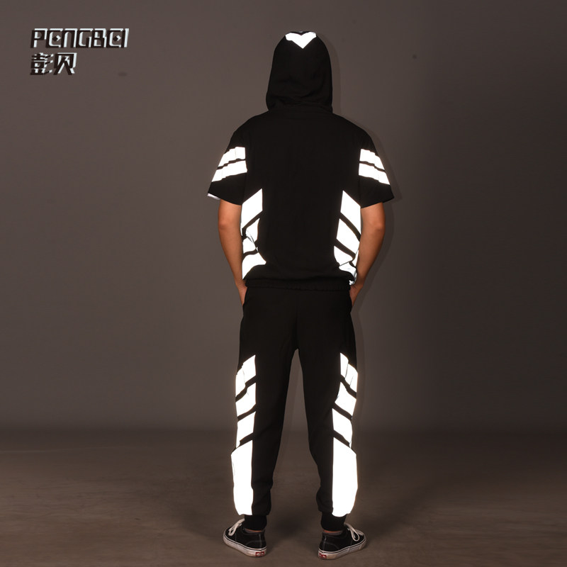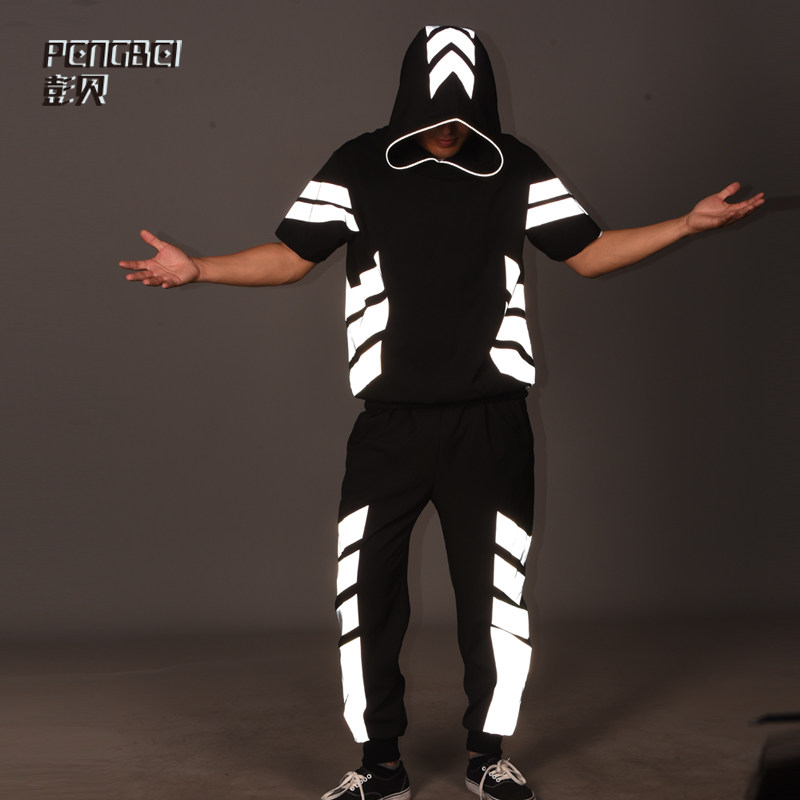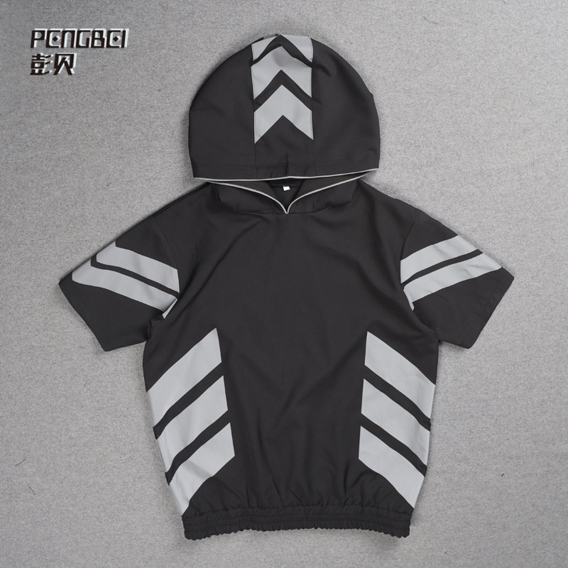 3M Reflective Collision Color Splicing Sports Suit Short Sleeve Hip Hop man Lianhood Sports Shirt Street Dance Team Custom T109
