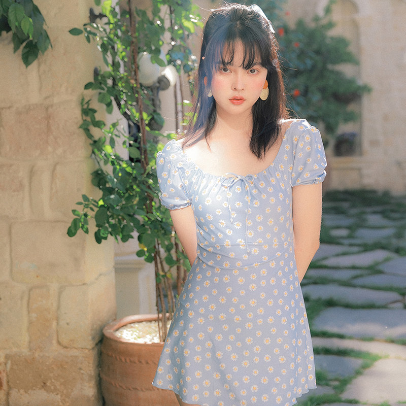 OMOM French swimsuit women's dress style conservative slim slim show thin belly cover girl student ins Sanya vacation