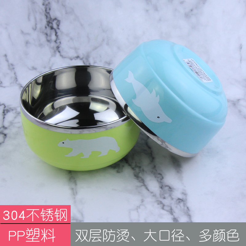 304 stainless steel children's bowl baby eating bowl anti-fall anti-burn and heat insulation cute cartoon bowl soup bowl rice bowl