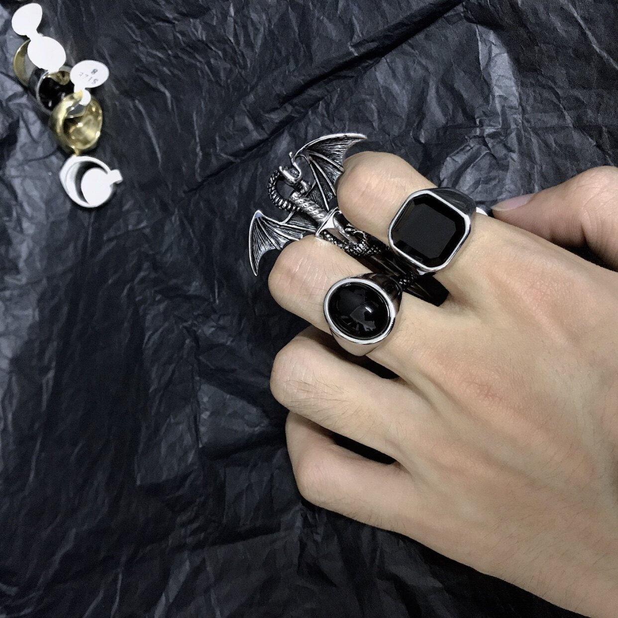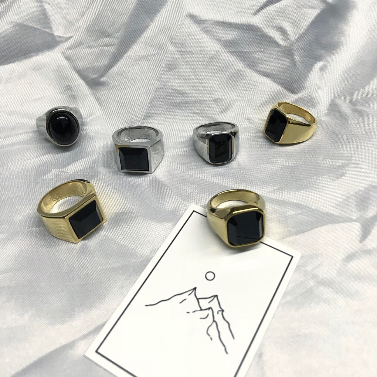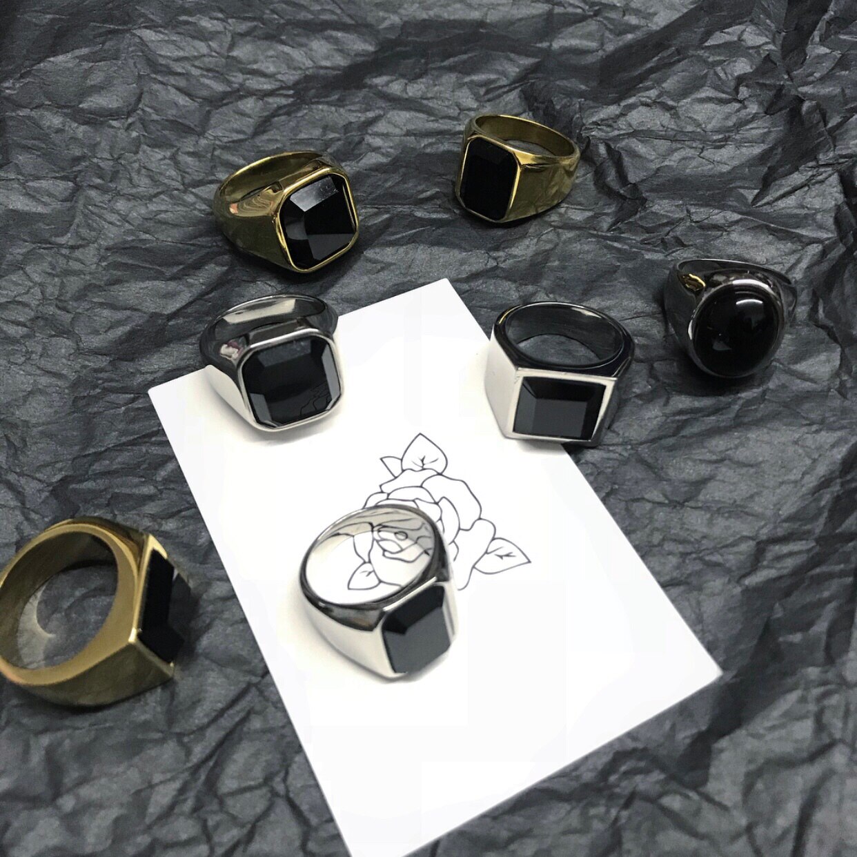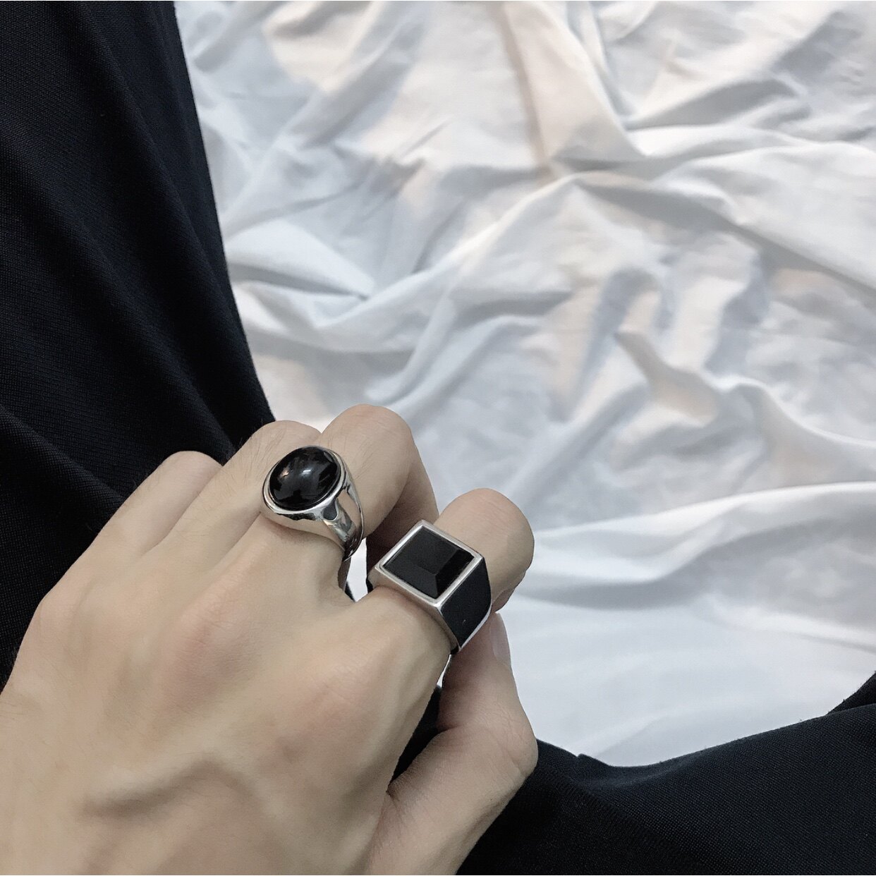 Japan and South Korea Dongdaemun Internet celebrity INS style same style simple and versatile cold style black gemstone titanium steel ring men and women trendy