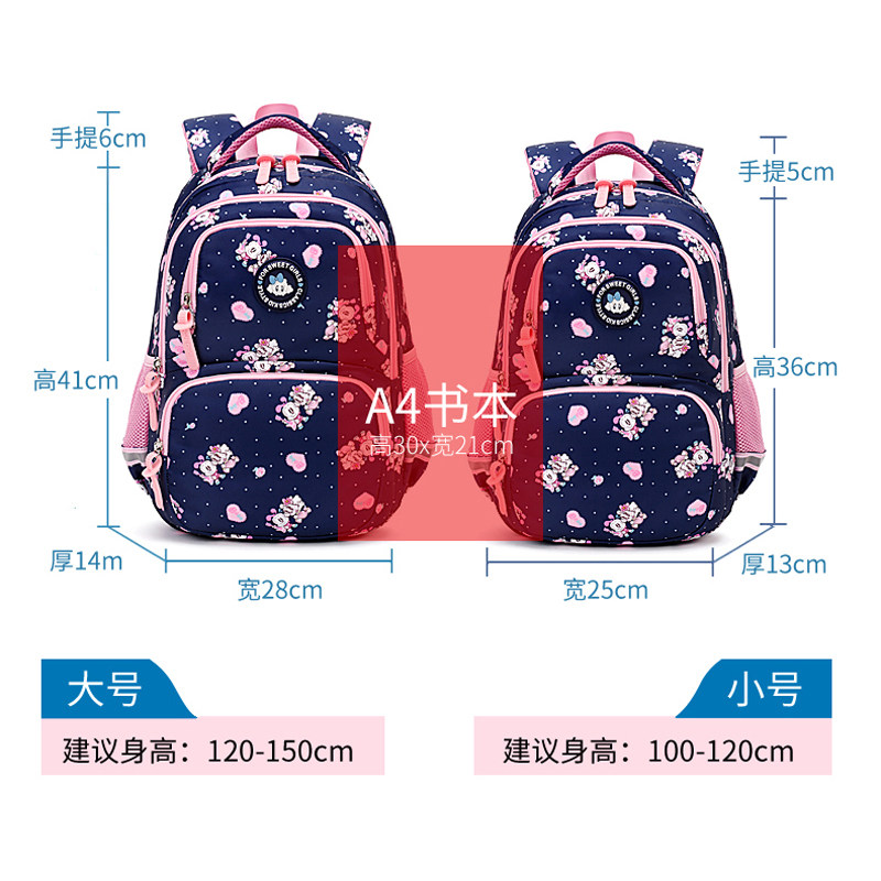 Babu bean children's school bags Primary school children 6-12-year-old girl 1-3-6 Grade Princess Double Shoulder Bag