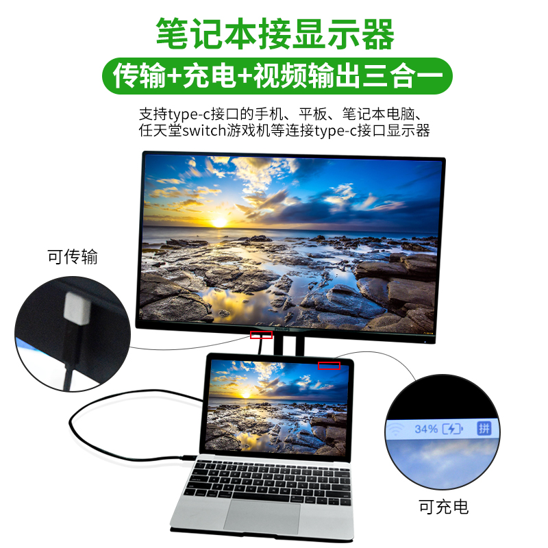 Dual head usb3 1type-c data cable 10gb transmission pd100w 4K lightning 3gen2 emarker projection