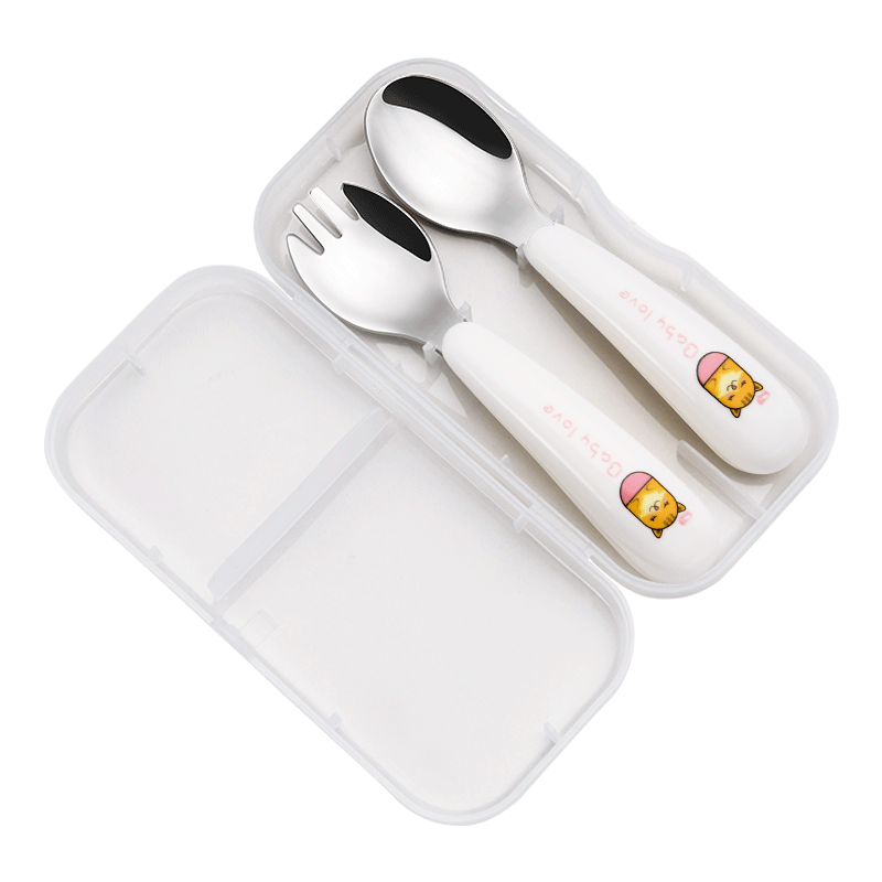 Baby learns to eat and train spoon children's tableware set 304 stainless steel household children spoon fork cute creative ideas