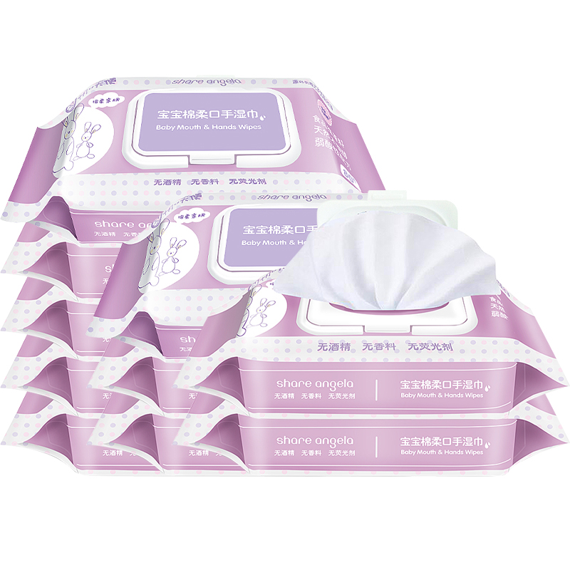 October Angel baby cotton flexor hand wet wipes baby BB special no alcohol spices 80 pumping 10 packs with lid