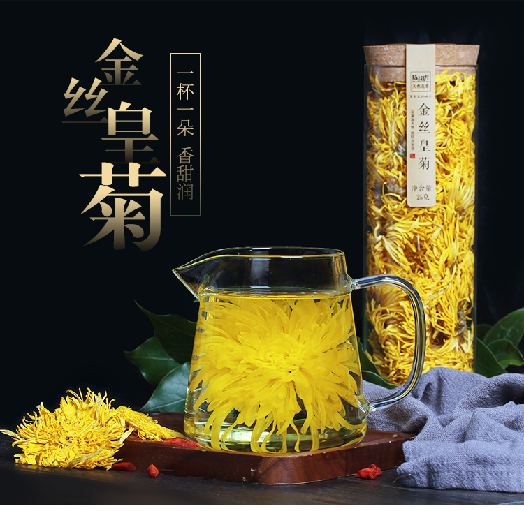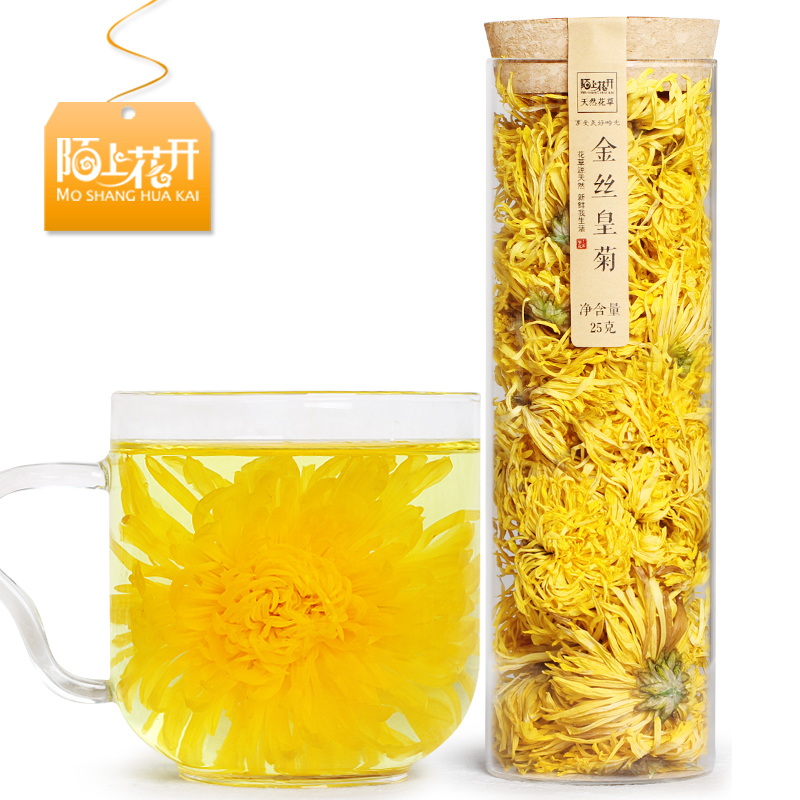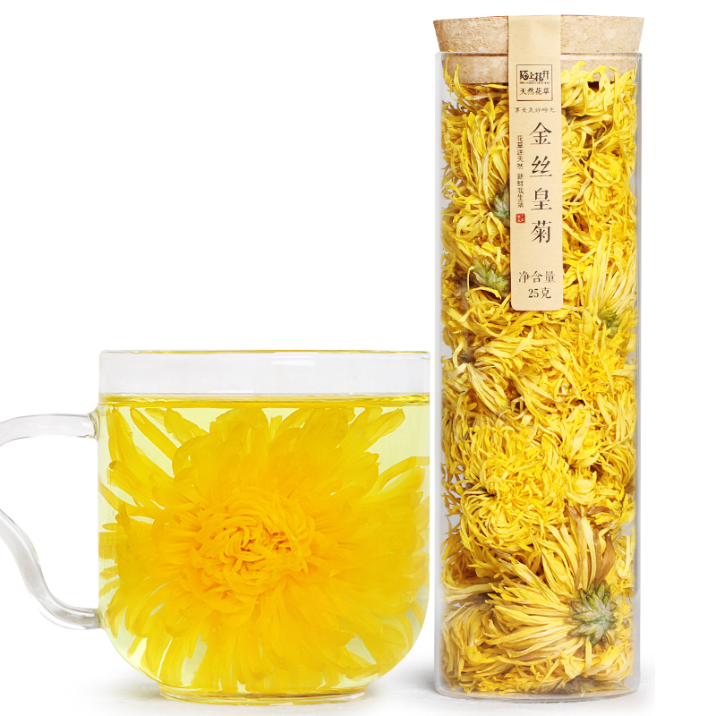 Chamomile tea golden silk royal chamomile with one glass of small packaging emblem state large chrysanthemum flower tea dogon chrysanthemum tea