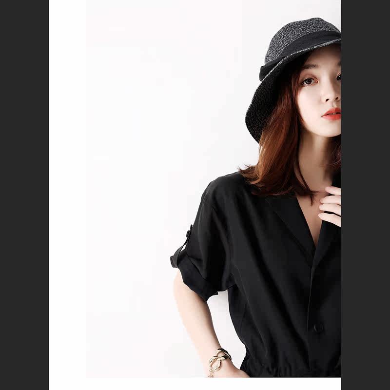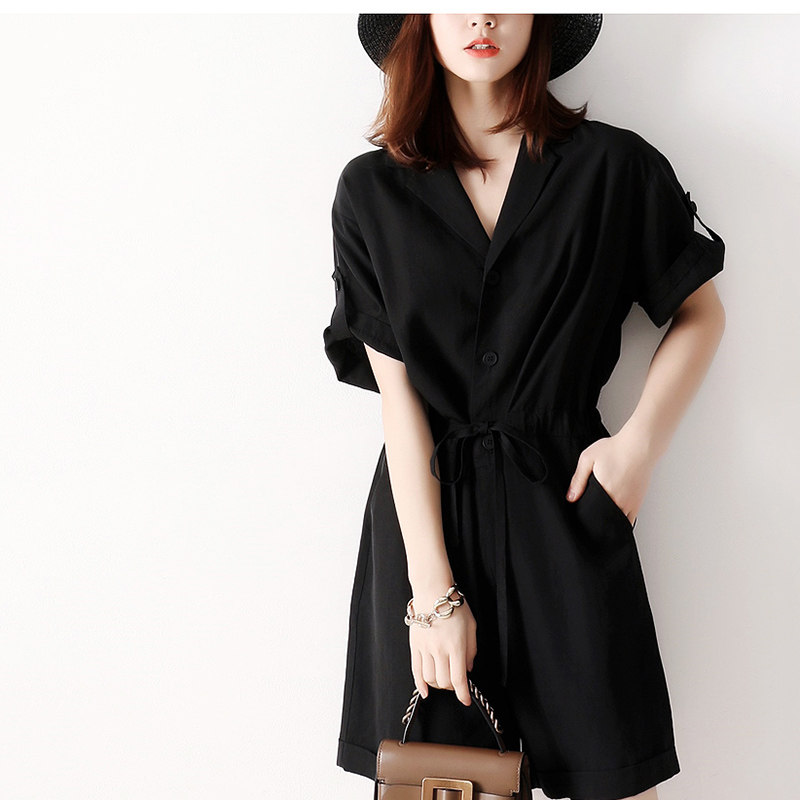Day Series Women's Fashion Comfort Extremely Simple linen black Overalls Adjustable Sleeves Draw Rope Waist Curl and Fit Pants