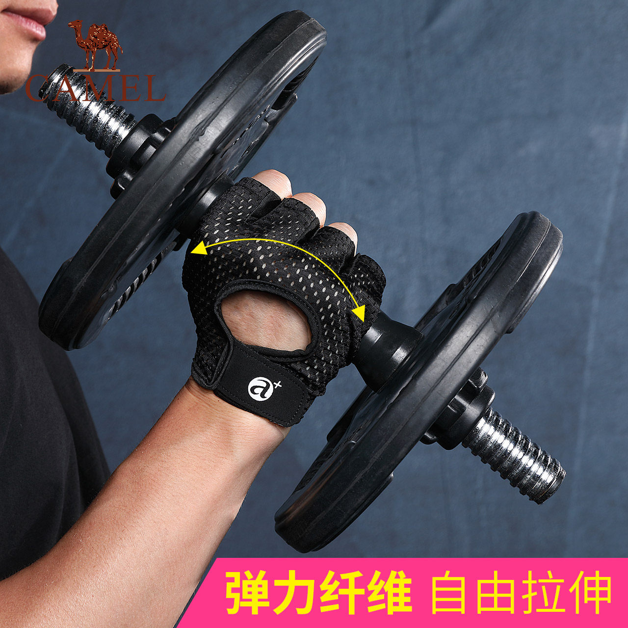 Camel outdoor non-slip sports gloves half finger men and women thin aerial yoga four-finger gloves Pilates lightweight