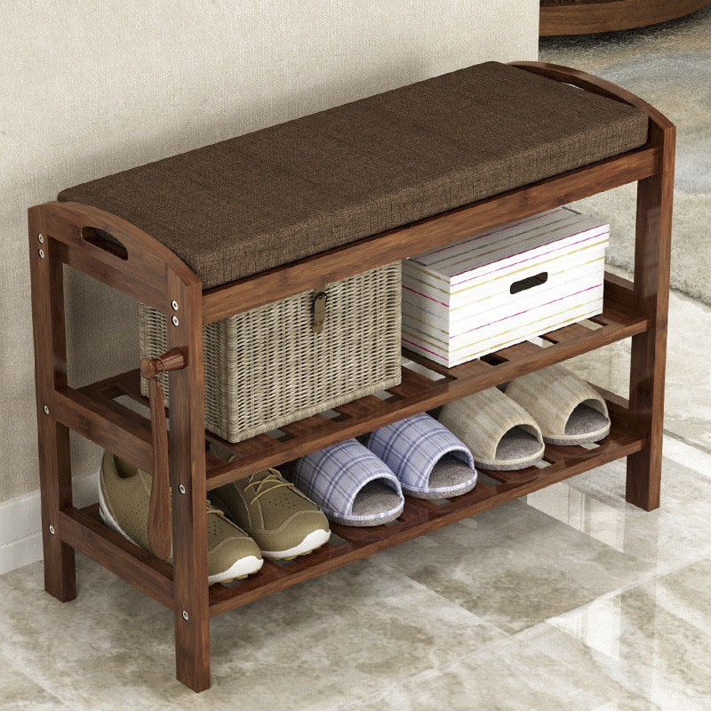 Nordic shoe stool Shoe cabinet Solid wood bamboo modern simple multi-functional European try-on door shoe rack Shoe stool