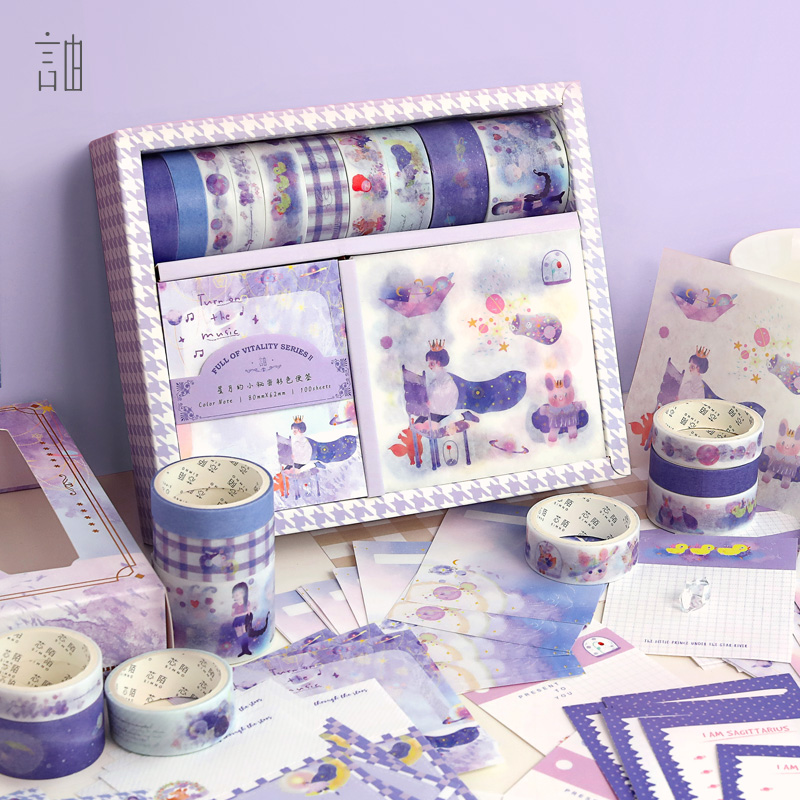 Xinmo and paper tape hand account sticker tape cute printing net red girl heart hand account material sticker sub-packing set basic retro solid color Korean small fresh diy original