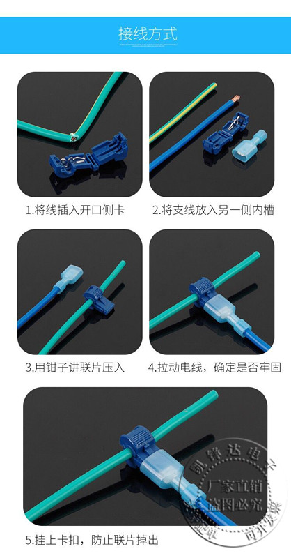 Blue T-type main line branch wiring terminals 20 sets of T2 break free wire quick extension wire exfoliating wire connector