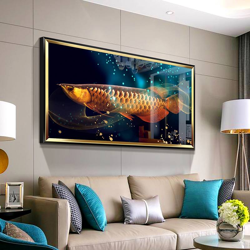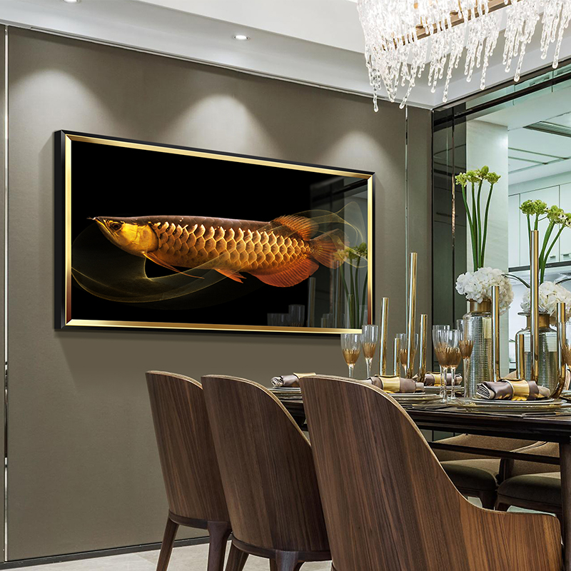 Lucky gold dragon fish dining room table decoration painting light luxury style dining room living room background wall painting high-end murals