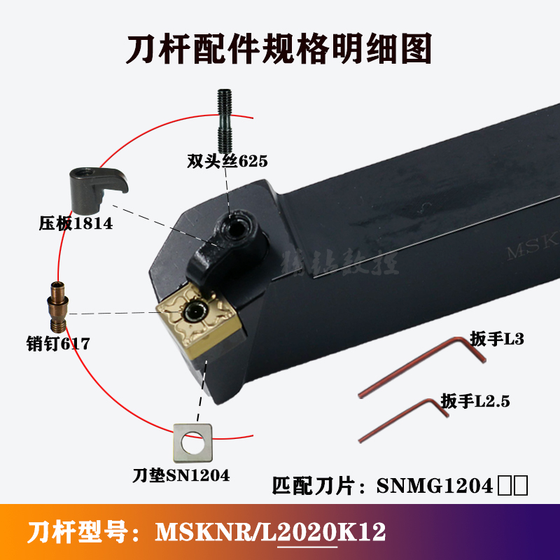 CNC tool bar 75 degree end face turning tool bar MSKNR2020K12 2525M12 3232P12 outer round turning tool