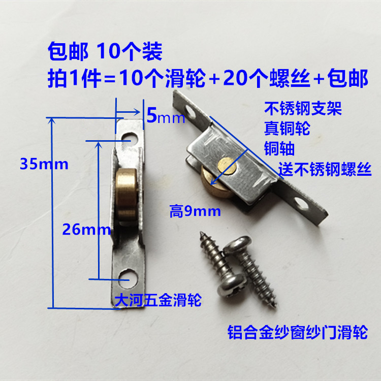 10 clothing aluminum alloy anti-mosquito screen gauze door pulley 5 mm wide stainless steel real copper push-pull sand wheel