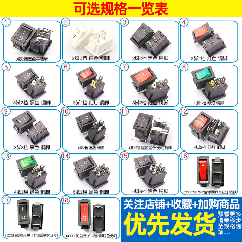 Small rocker switch KCD1-101 104 power button water dispenser electronic scale Boat Rocker 2 feet 4 feet 250V