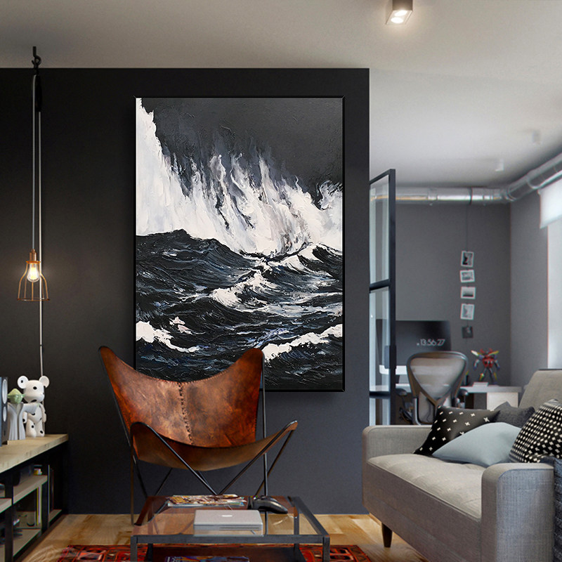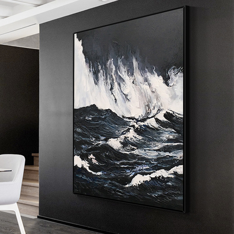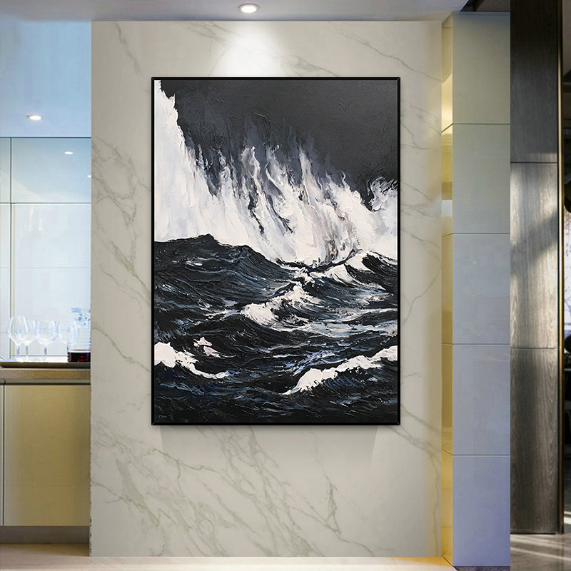 Hand painted oil painting Waves Scenery Decoration Painting Modern Minimalist Abstract Art Genguan Gangway Background Wall Living-room Hanging Painting