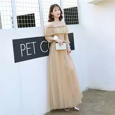 A long shoulder lamp sleeves B Long round neck shoulder C long suspenders shoulder shoulder D long sexy suspenders V collar shoulder shoulder lamp sleeves medium and long version