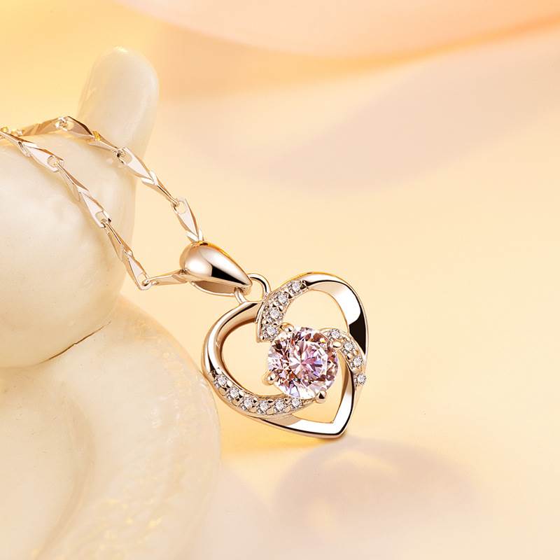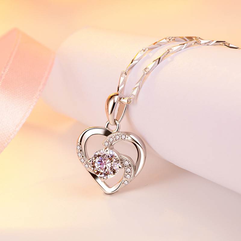 999 Sterling Silver Love Pendant Korean Style Fashion Micro Inlay Necklace Women's Clavicle Chain Jewelry