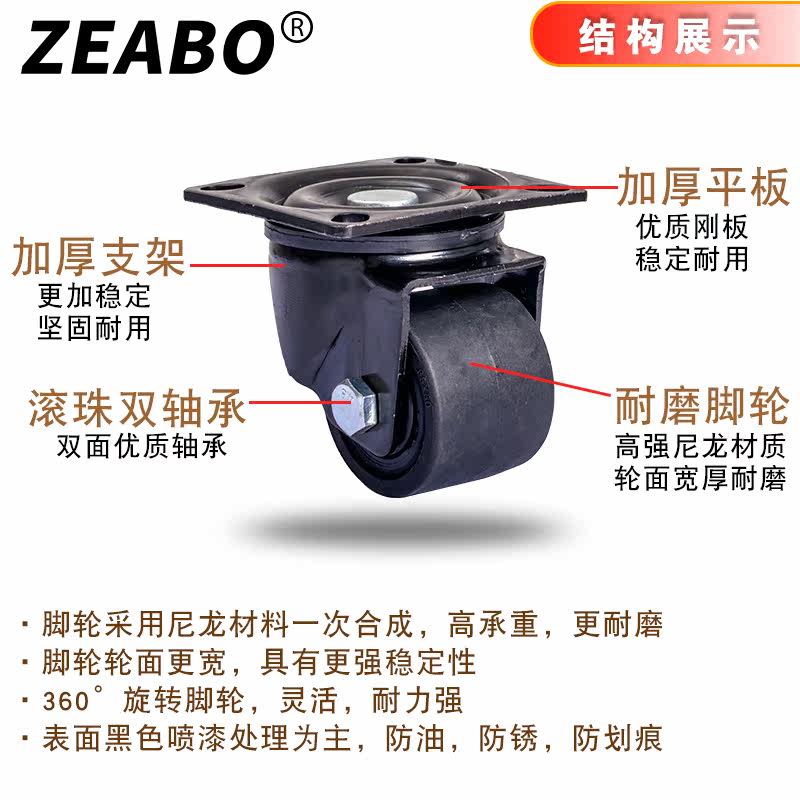 2 Inch Flat Low Gravity Wheel Castors Load-bearing Universal Wheels 2 5 Inch Heavy Wheels 3 Inch Nylon Industrial Equipment Wheels