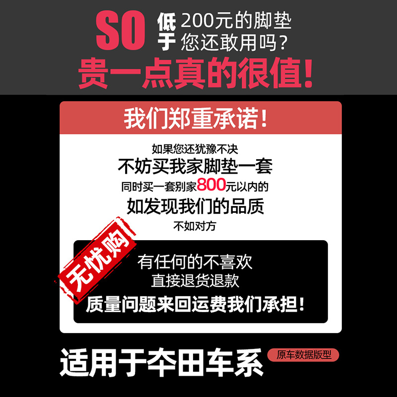 (If the display model does not match, you can consult online customer service 99% of the models are customizable) (Single-layer leather with logo) → (Single-layer car logo) Black Black Line Horizontal Stripe (Single Layer Car Logo) Coffee Coffee Line Horizontal Stripe (Single Layer Car Label) Beige Stripe (Single Layer Car Label) Burgundy Red Line Stripe (Single Layer Car Logo) Black Gold Wire Stripe (Single Decker Car Logo) Black Red Line Stripe (Silk Ring Leather Double Detachable Model with Car Logo) → (Double DeckEr Car Standard) Black Black Line Horizontal Stripe + Black Silk Circle (Double Decker Car Standard) Black Black Line Horizontal Stripe + Gray Black Silk Circle (Double Decker Car Standard) Burgundy Red Line Horizontal Stripe + Red Circle ( Red Silk Circle ( Double-layer car logo) Coffee color coffee line horizontal stripe + coffee color silk circle (double decker car standard) beige beige stripe + mi curry wire circle (double decker car standard) black red line stripe + black silk circle (double layer car standard) black gold wire stripe + gray black wire ring (double layer car logo) black gold wire stripe + black wire circle (double deck car logo) black red line horizontal stripe + black red wire ring (60% owners choose special package) mat with tail box pad ↓ ↓ ↓ ↓ package 1 - single layer foot pad + flat main mat (take note color default with car logo) Package 2 —— Single-layer foot pad + fully enclosed trunk pad (take a note color with a car logo by default) Package 3 - Double layer foot pad + Tile main mat (take a note color with a car logo by default) Package 4 - Double layer foot pad + Full enclosed trunk pad (take a note color with a car logo by default)
