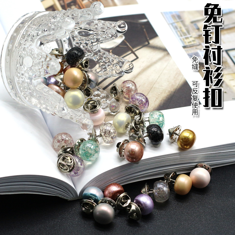 Small fragrant wind free of sewn detachable 100 hitch-free nail button Female Shirt Brooch Chest-Pin Buttoning-proof Light Dark decor