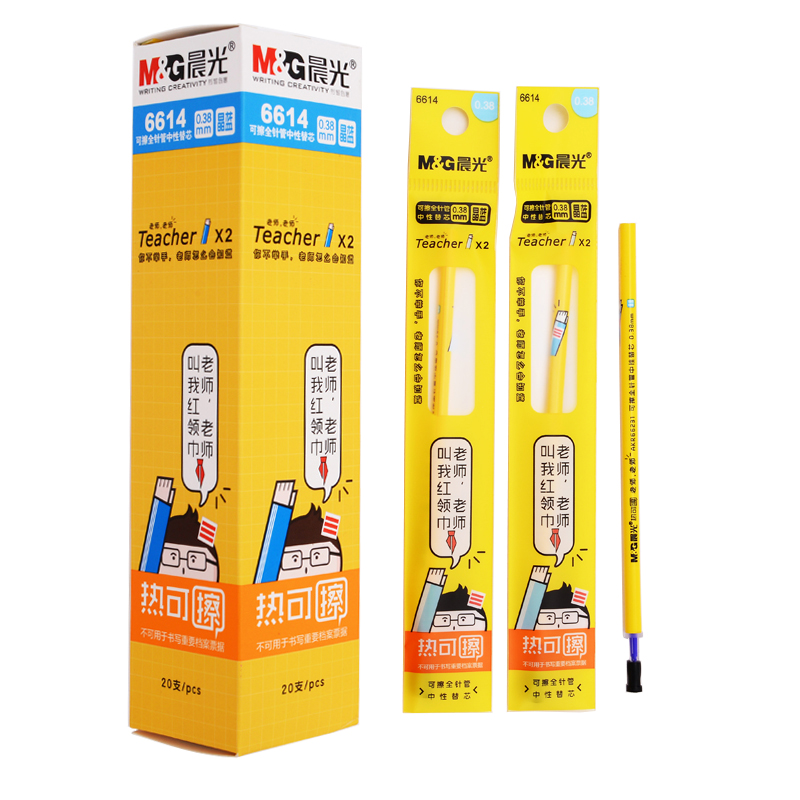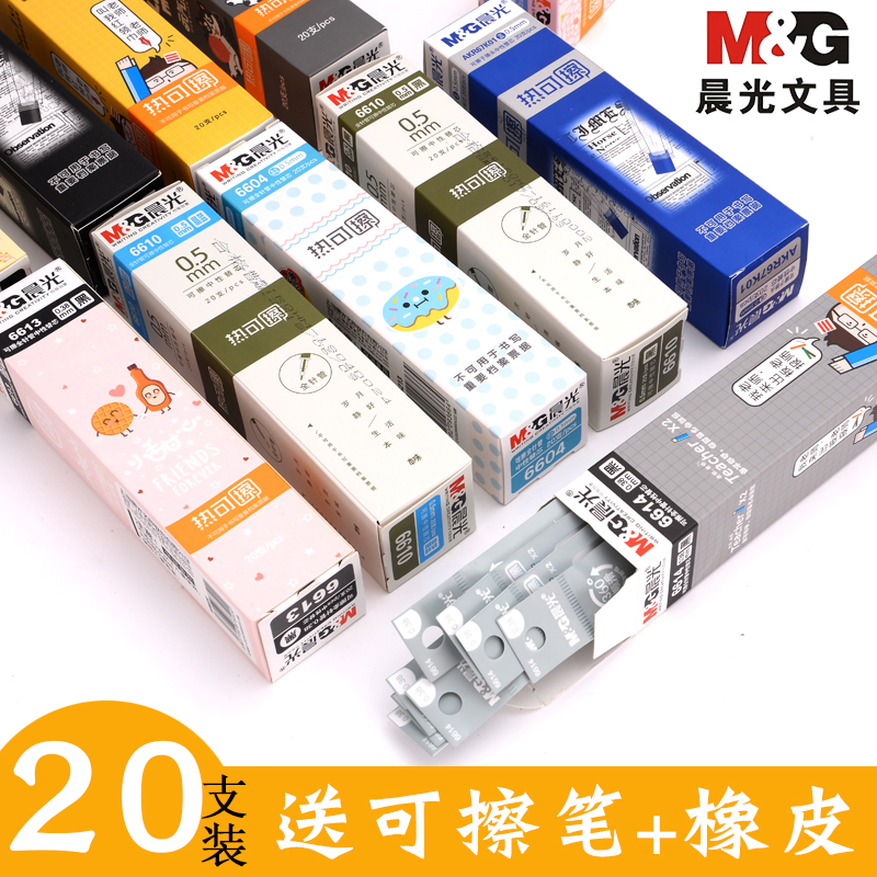 Chenguang erasable pen refills 20 primary school students use hot erasable magic rub 3-5 grade female magic erase word cap blue rub easy 0 5 crystal blue black 0 38mm cartoon erasable refill