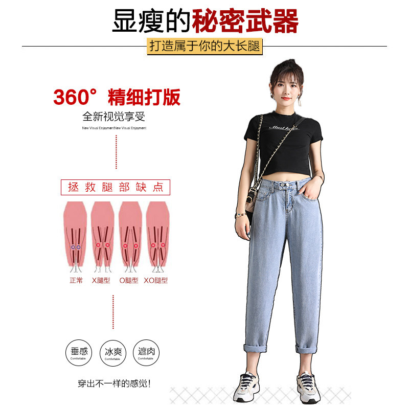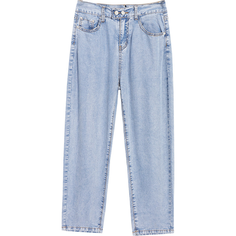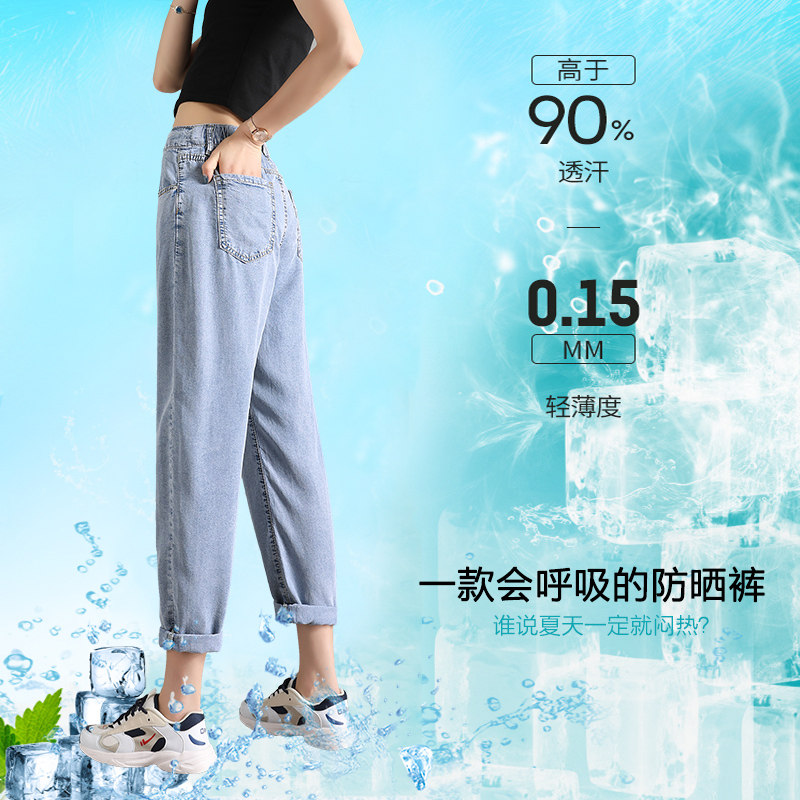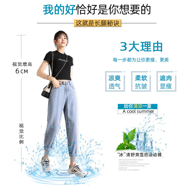 High-waisted jeans women's 2022 summer new ice silk wide-leg pants Korean version is thin and thin section old harem cigarette pants