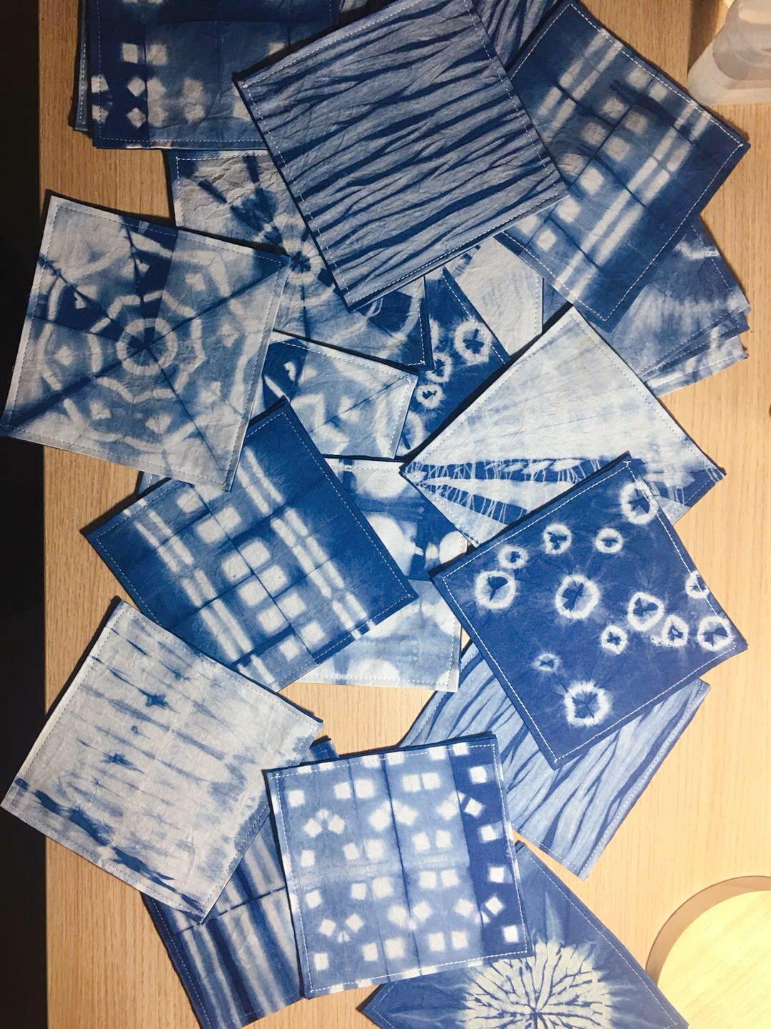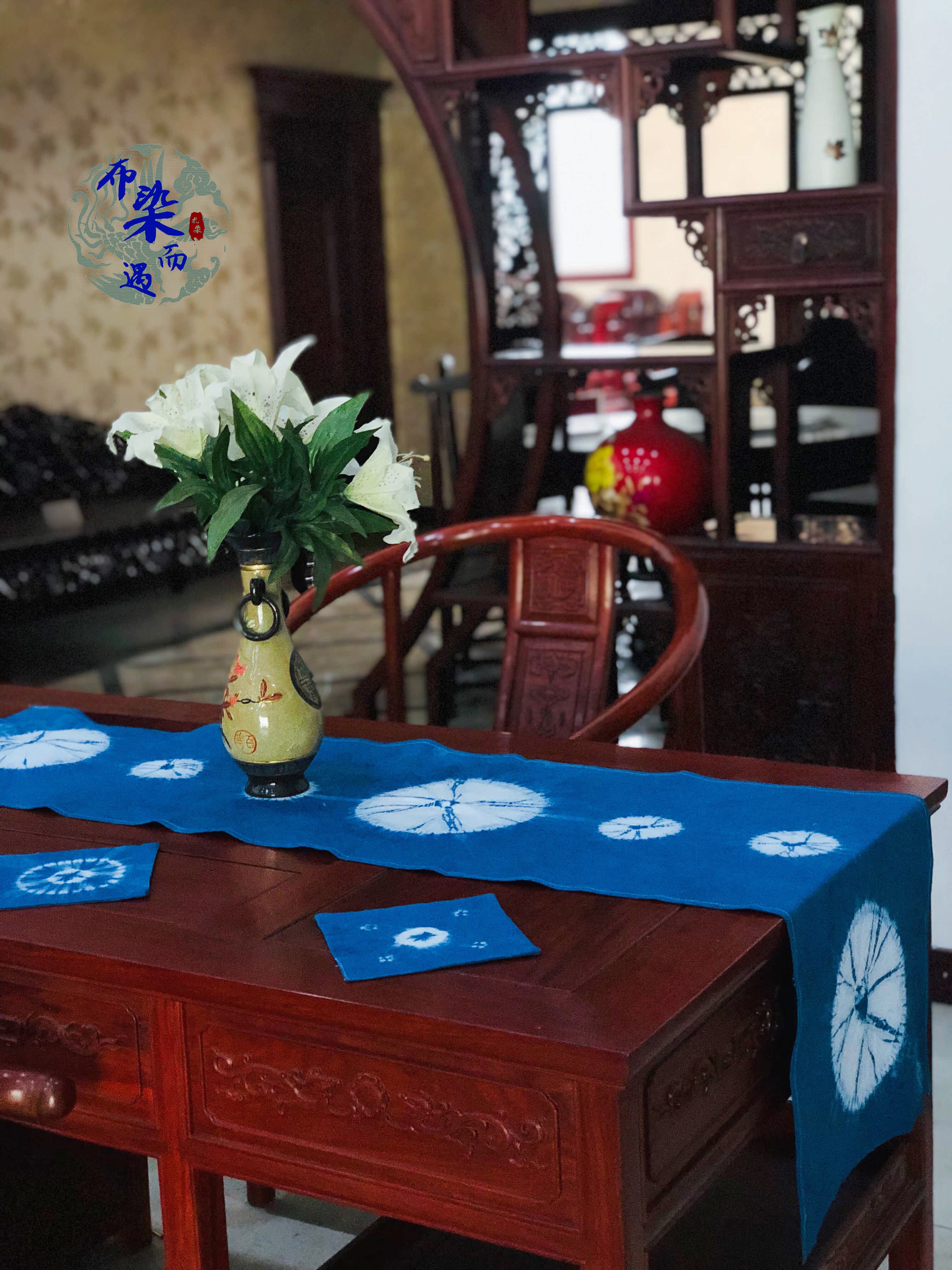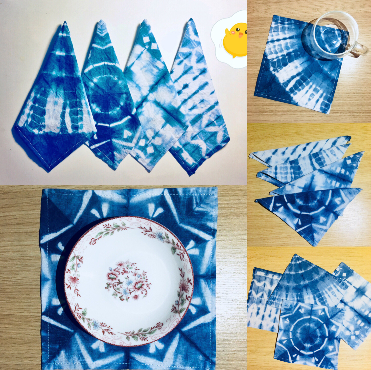 Cloth dyeing and encounter hand design diy blue dyeing Grass dyeing Tie-dyed pure cotton double-layer coaster tray insulation pad square towel