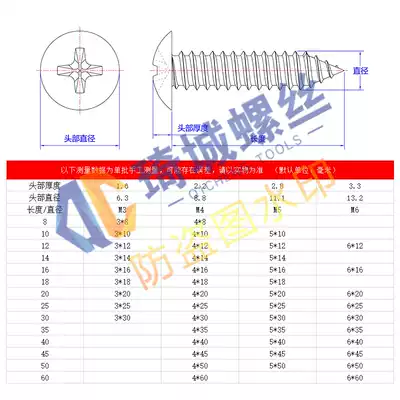 Large flat head self-tapping screw plus hard galvanized large head Zigong nail pointed tail wood oblate mushroom screw M3M4M5M6
