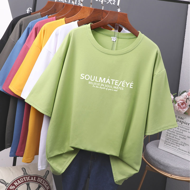Large size woman 240 catty T-shirt woman fat mm200 catty add Fat 300 catty blouses Summer Clothes Smear tea Green short sleeves