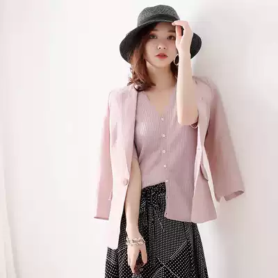 Silk and linen small suit feminine temperament 2019 summer new solid color one-button slim casual suit jacket thin section
