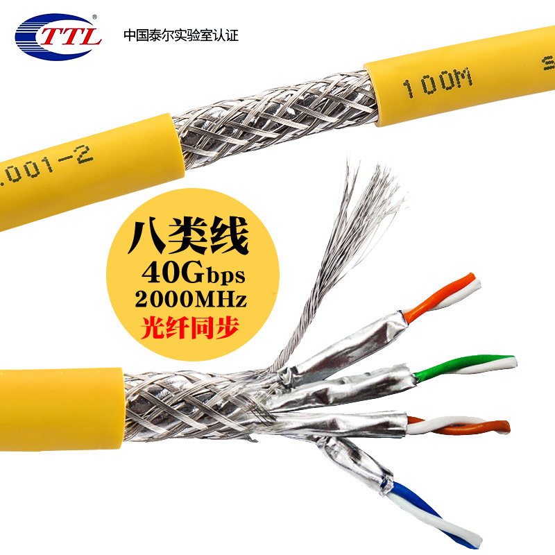 Eight-type jumpers CAT8 SFTP Double-screen-screen route support POE 100W 40G in sync with fiber optic transmission
