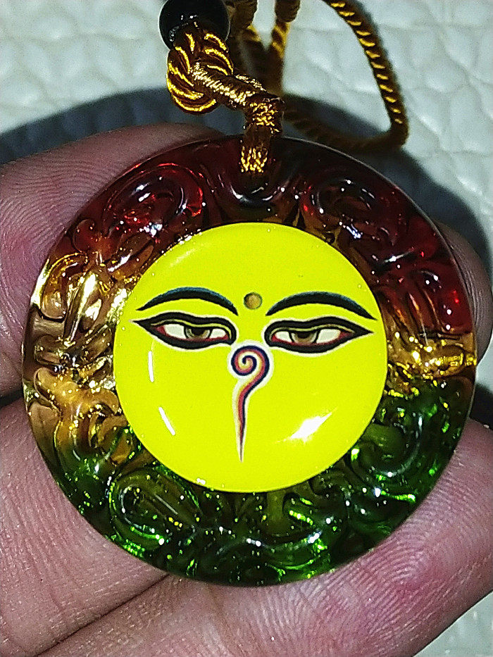 Tie-in glass pan ruo eye pendant necklace yellow rope diameter 3 5 cm rice