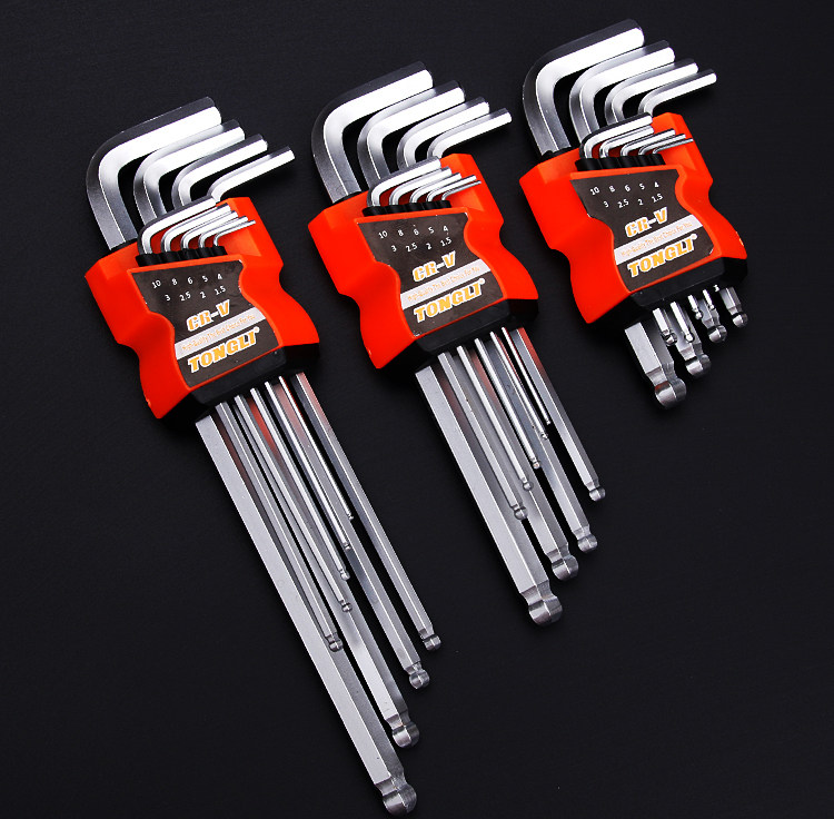 9 pieces of common carbon steel flat head inner hexagonal short section 9 pieces common carbon steel flat head lengthened section 9 pieces common carbon steel flat head inner hexagon special length subsection 9 pieces CRV ball head Inner hexagon short section 9 pieces CRV ball head