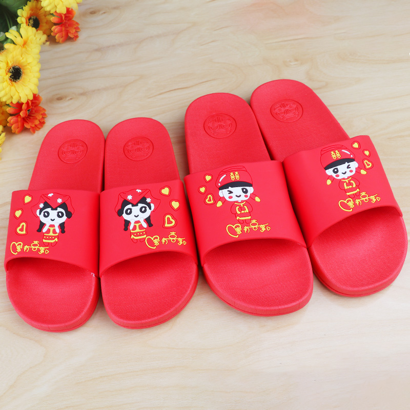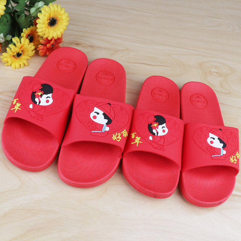 Buy one for a wedding slippers Happy Cool Slippers for men and women Summer Bathrooms Bath Non-slip New Wedding Wedding Celebration