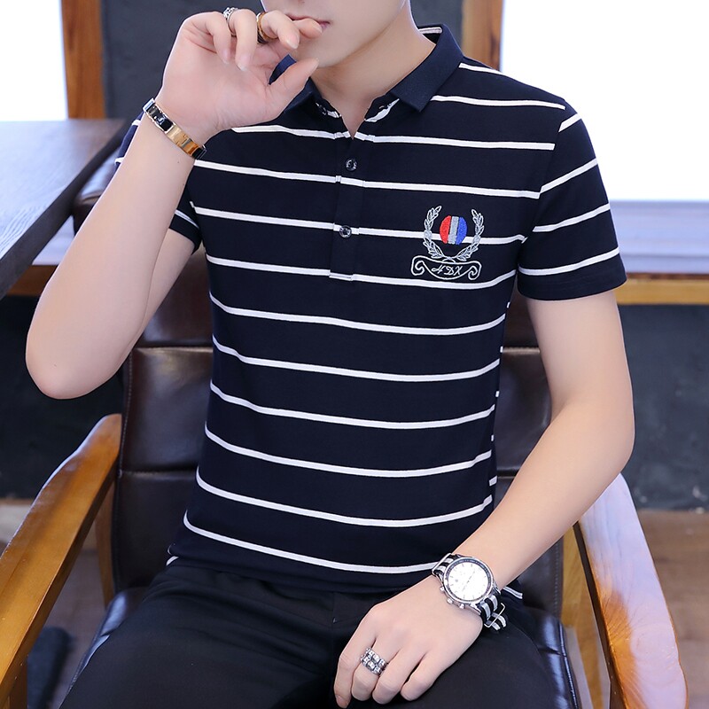 Short sleeve T-shirt male summer new half sleeve turnover polo shirt for men trendy with summer clothing T-shirt striped clothes